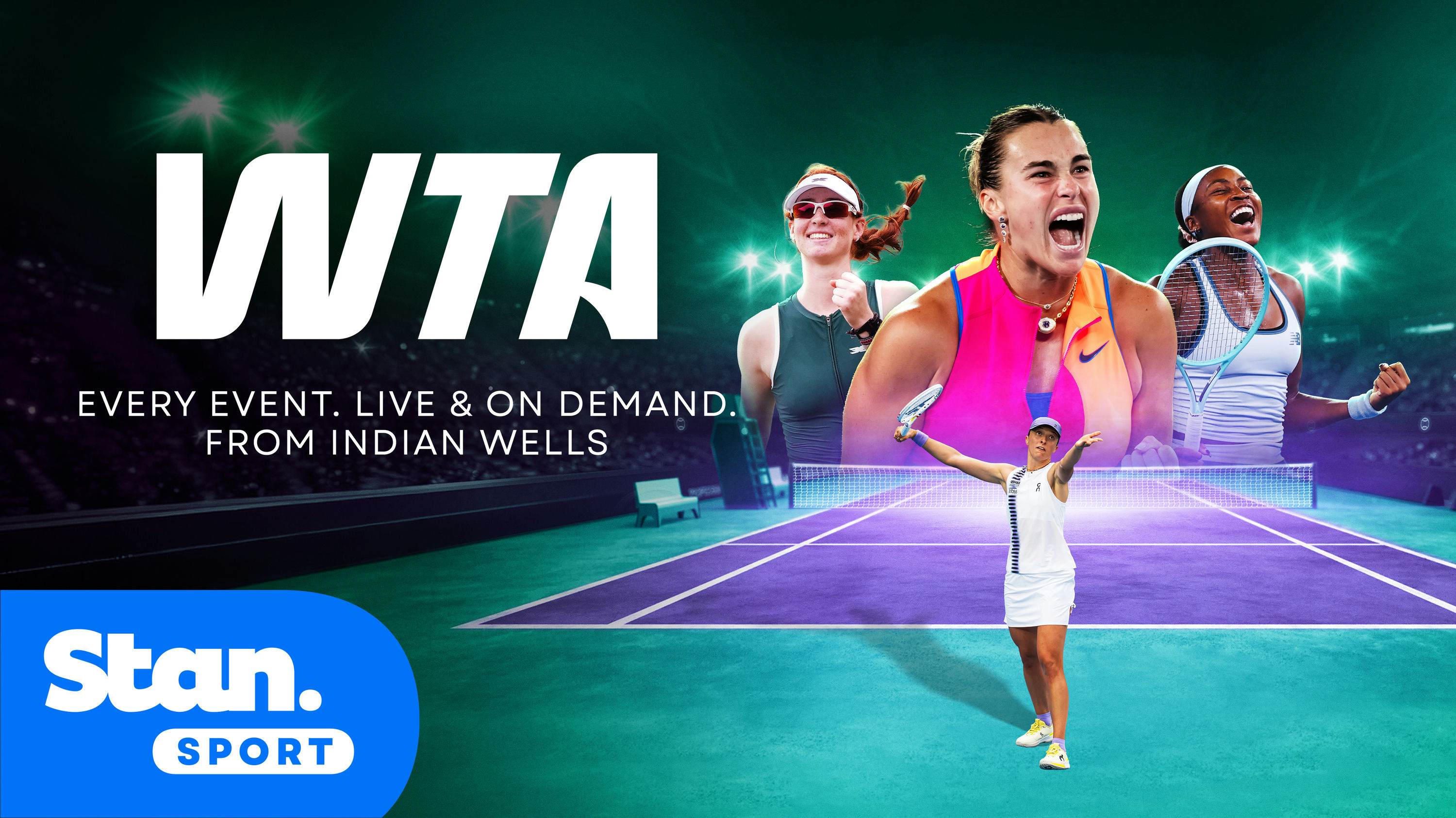 The WTA Tour joins an impressive lineup of world-class women’s content on Stan Sport, including Grand Slam tennis, WSL, Rugby World Cup, Super W and the Summer and Winter Olympic Games.